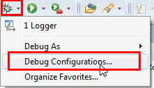 1. Create a debug configuration. The debug button might not always be visible, you will see it definetely by switching to the Java perspective.
